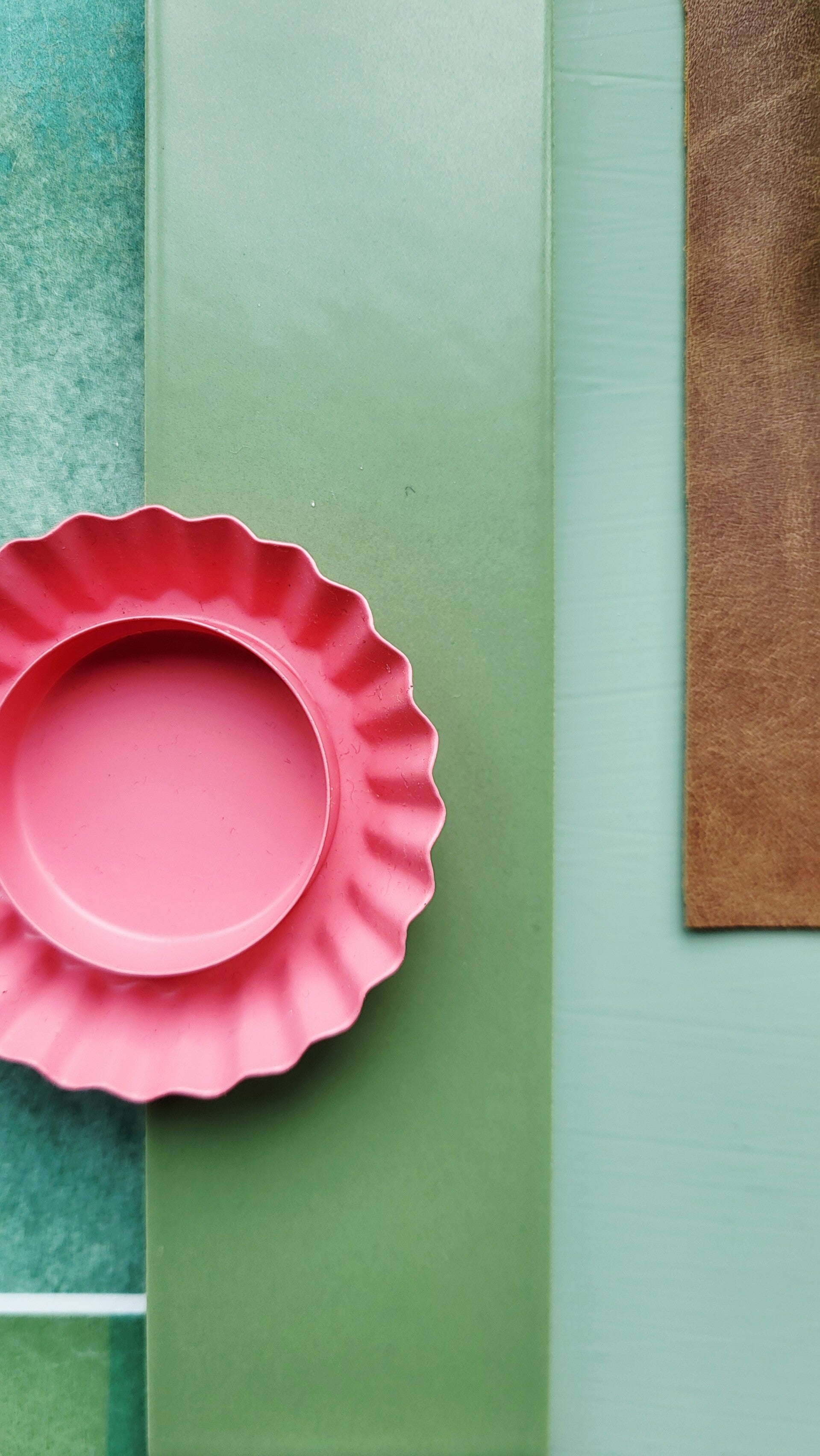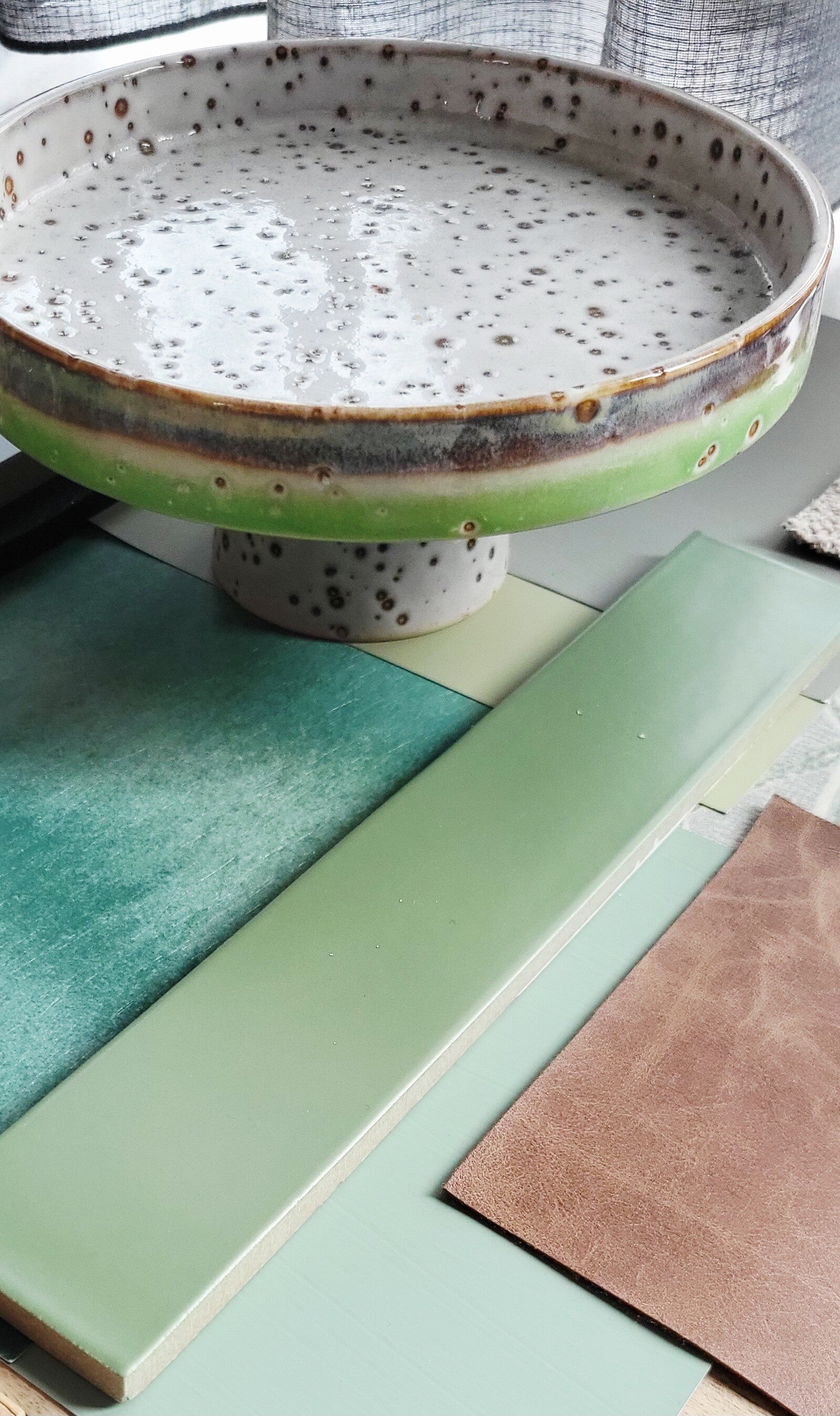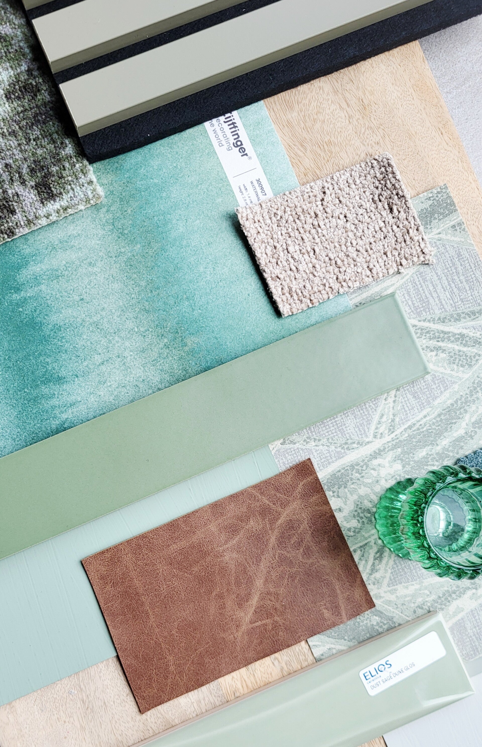 De basis wordt rustig waarbij gebruik gemaakt wordt van groentinten in een ton sur ton effect, ook worden veel natuurlijke tinten gebruikt. Om wat meer swung aan de ruimte te geven én de vloer nog meer te verzachten gaan we gebruik maken van een toef roze. Ook komt (eiken) hout terug in het interieur voor de warme uitstraling en maken we gebruik van staal voor die stoere touch. Een omarming met lef door een bijzondere indeling, kleur- en materiaalgebruik met mooi behang, tegeltjes, dessins en een aantal eyecatchers. Het ruimtelijke gevoel wordt benadrukt evenals een gezellige sfeer die omarmt, gelijk bij binnenkomst. Strakke belijningen worden gecombineerd met afgeronde vormen, passend bij de bijzondere ronde erker.