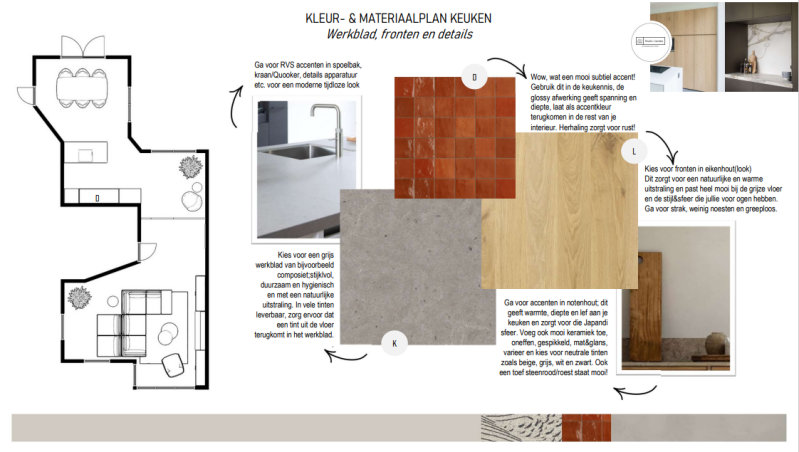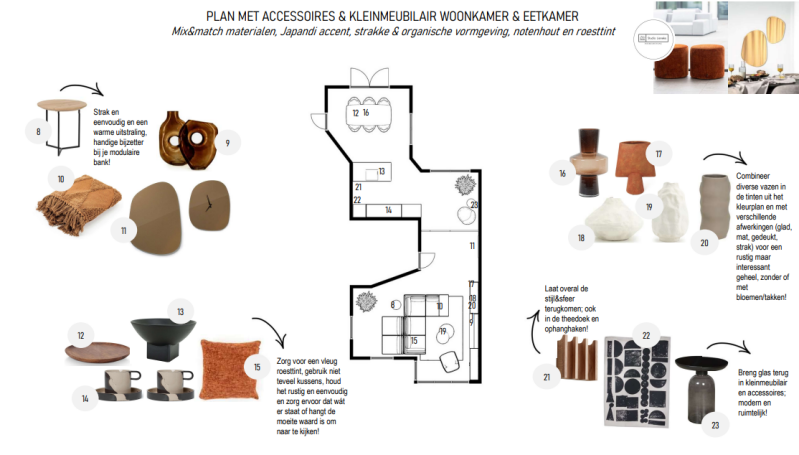 Modern en Japandi in de MIX! Meer warmte in huis maar ook rust, licht & ruimte, dit interieur omarmt én geeft een strakke en opgeruimde sfeer! De basis is rustig door het gebruik van natureltinten, hout, grijs, zwart en wit met een aantal mooie statements zoals de vloer; tijdloos maar allesbehalve saai! Een aantal eyecatchers stelen de show, mooie accessoires vullen aan. Functionaliteit staat bovenaan!